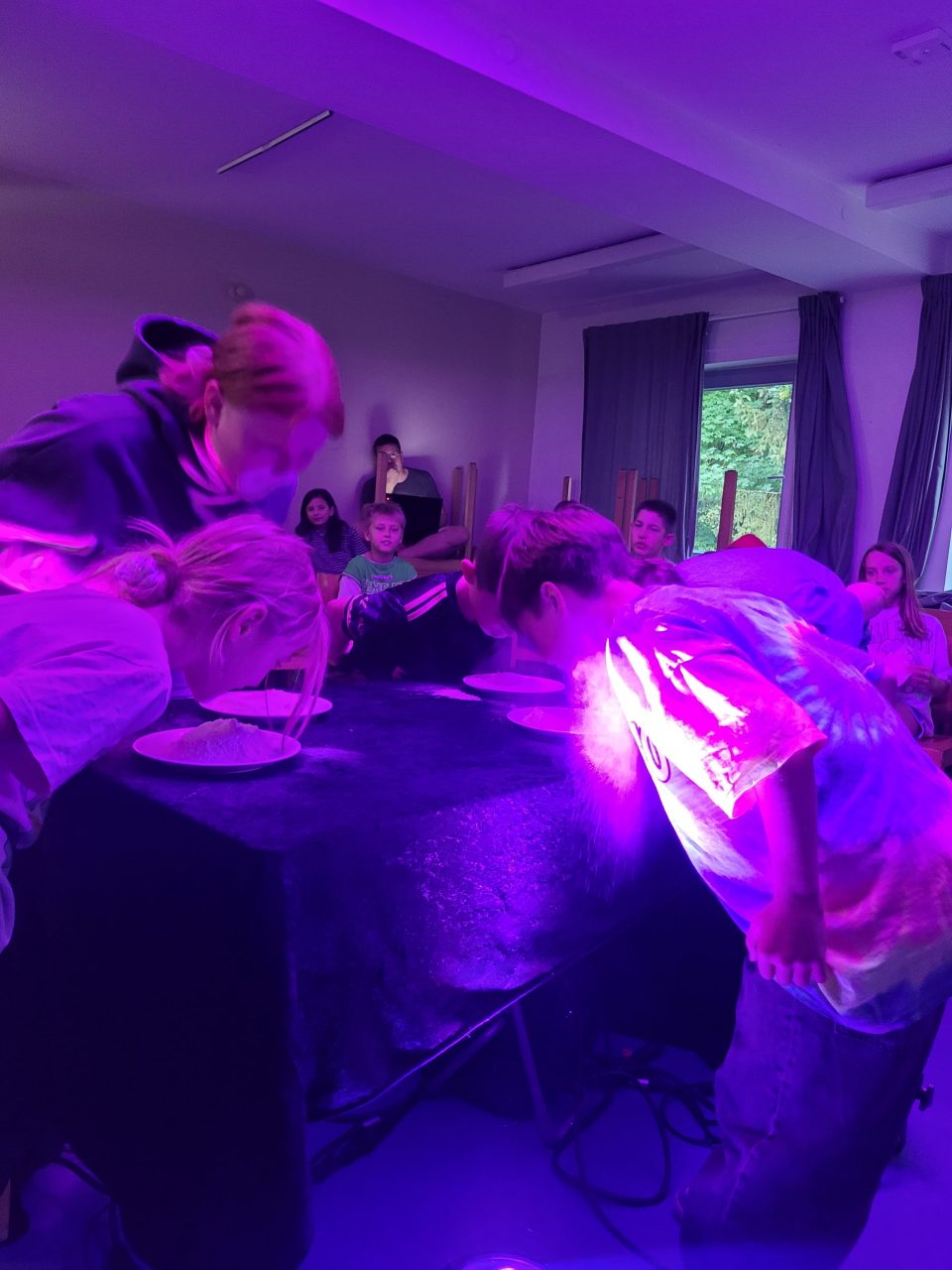 Zum Abschluss gab’s den beliebten Süßigkeitenabend. In lustigen Challenges konnten sich die Kinder Leckereien erspielen, mit viel Spaß und vollem Einsatz!