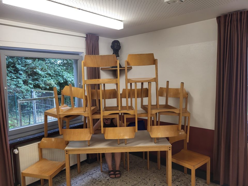 nach dem etwas ruhigeren Sonntag starteten wir heute wieder pünktlich um 8:30 Uhr mit dem Frühstück in den Tag. Direkt danach stand eine große Aufräumaktion auf dem Programm. Die Zimmer wurden in Ordnung gebracht und gemeinschaftlich aufgeräumt. Zum Mittagessen gab es Gulasch mit Klößen, was für eine gute Stärkung sorgte. Am Nachmittag wurde das Spiel „Bares für Rares“ gespielt. Dabei ging es darum, Gegenstände möglichst gut zu präsentieren, Angebote auszuhandeln und gemeinsam die einzelnen Händler ab zu arbeiten. Am Abend fand dann nochmal eine Disco statt, da die Stimmung beim letzten Mal so gut war. Es wurde wieder getanzt, gelacht und gemeinsam der Tag abgeschlossen.